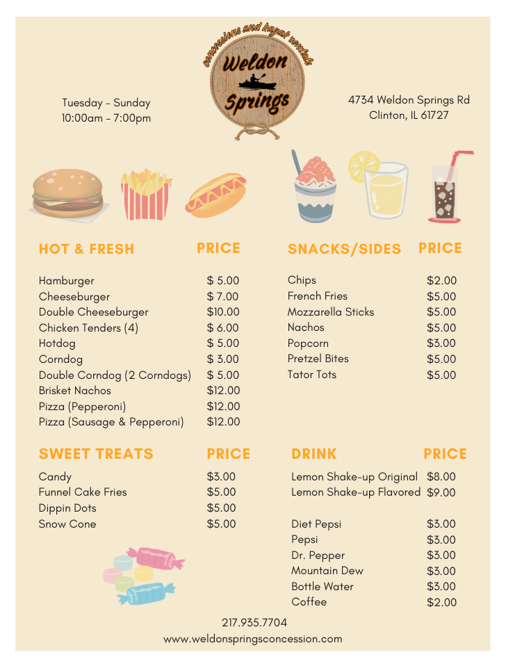 Concession Hours Tuesday-Sunday 7:00am to 10:00am